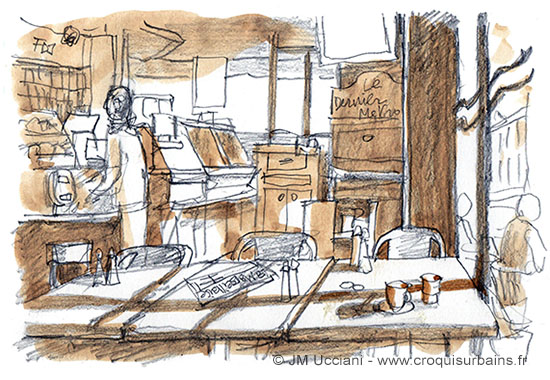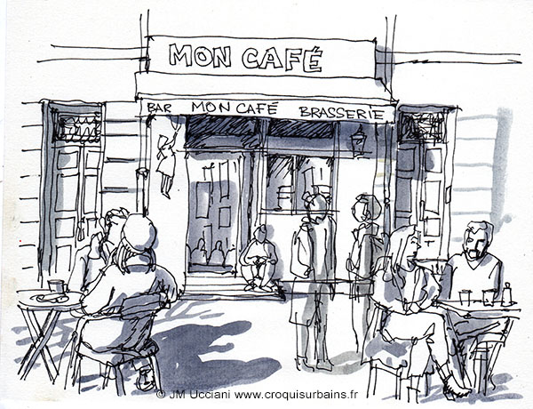 Vu du port de la Réserve. Feutre et lavis d’aquarelle monochrome sur papier 29,7/21 cm 250 gr.