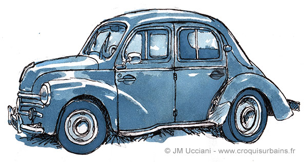 La 4 Chevaux-Renault. Stylo plume et aquarelle format A4.