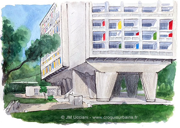 Immeuble Le Corbusier à Marseille vu de différents endroits.