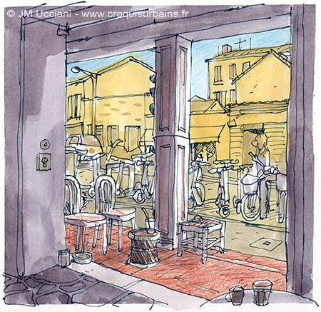 Le cours d’Estienne d’Orves est une grande esplanade piétonne située en plein cœur de Marseille, entre le Vieux-Port et l’Opéra. Dessin aquarelle format 15/21 cm.