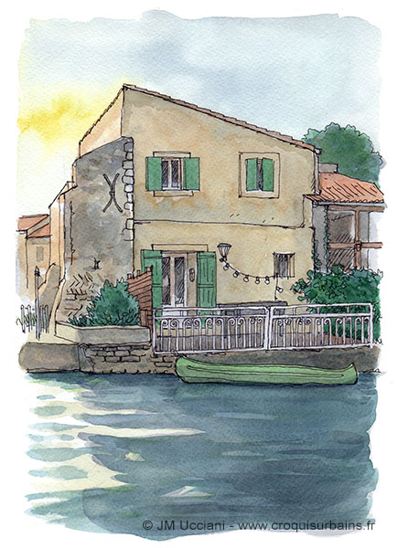 Maison en bord de Sorgue au Thor. Format A4.