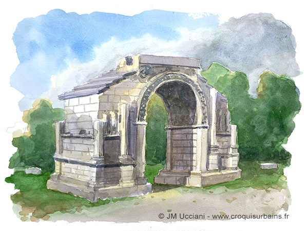L’arc de triomphe romain de Glanum à Saint-Rémy de Provence. Aquarelle format 30/40 sur papier 300 gr.