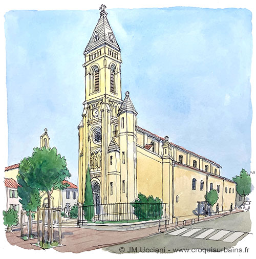 L’église de Saint-Barnabé. Stylo encre et aquarelle format 30/30 cm sur papier 300 grammes