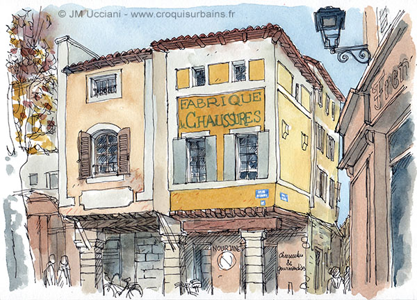 Lierre gigantesque sur cette façade à Cavaillon. Dessin et aquarelle format 21/29,7.