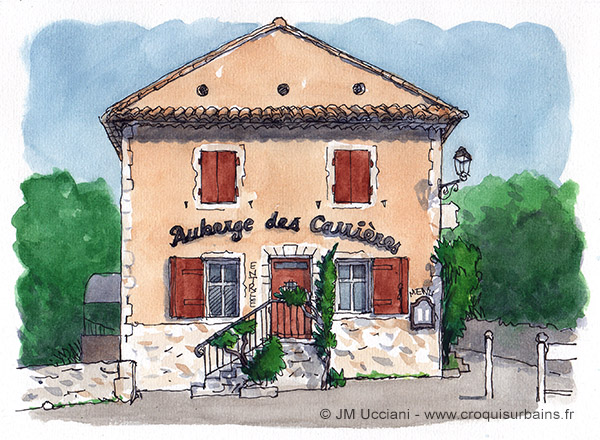 Le Couvent Levat à la Belle de Mai à Marseille, une cité d’artistes, une programmation et un jardin de 2 hectares ouvert toute l’année au public. Dessin aquarelle format A4.